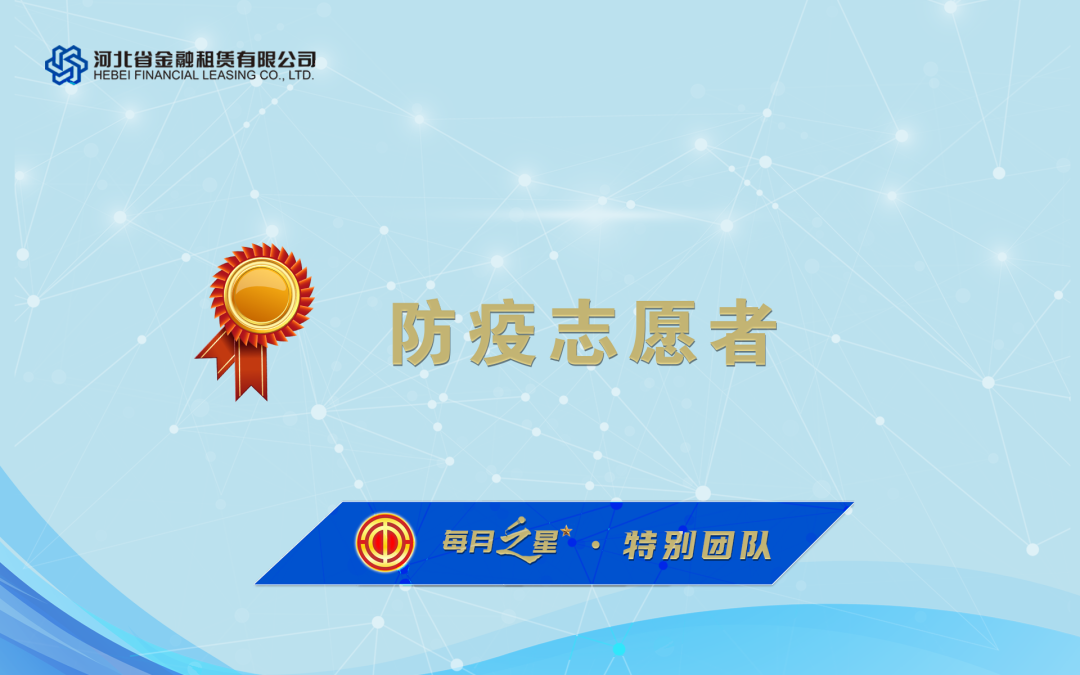 8月份,河北金租一方面抓業(yè)務(wù)促投放,積極創(chuàng)新業(yè)務(wù)模式和打磨服務(wù)產(chǎn)品,一方面積極落實區(qū)域防疫政策,以責(zé)任傳遞租賃溫度,為疫情防控貢獻(xiàn)力量。工會委員會評選出本月“每月之星”,請優(yōu)勝團隊和優(yōu)秀員工珍惜榮譽,再立新功,請全體干部員工以先進(jìn)為榜樣,再接再厲,再創(chuàng)佳績