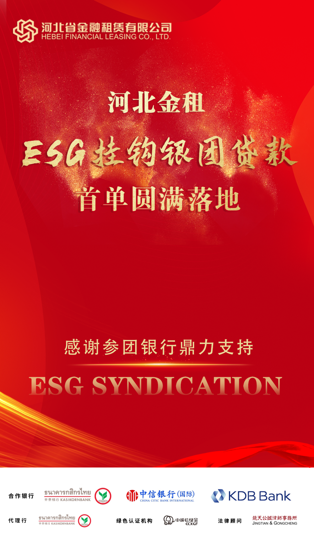 近期,河北省金融租賃有限公司(以下簡稱“河北金租”)成功募集首筆可持續(xù)發(fā)展(ESG)掛鉤銀團(tuán)貸款,這是金租行業(yè)開展的首單境內(nèi)ESG掛鉤銀團(tuán)貸款業(yè)務(wù),也是河北金租貫徹監(jiān)管政策要求,履行企業(yè)社會(huì)責(zé)任,積極探索綠色租賃業(yè)務(wù)的又一重要舉措。